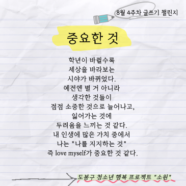 "나"를 스스로 사랑할 수 있으면 좋겠네요
