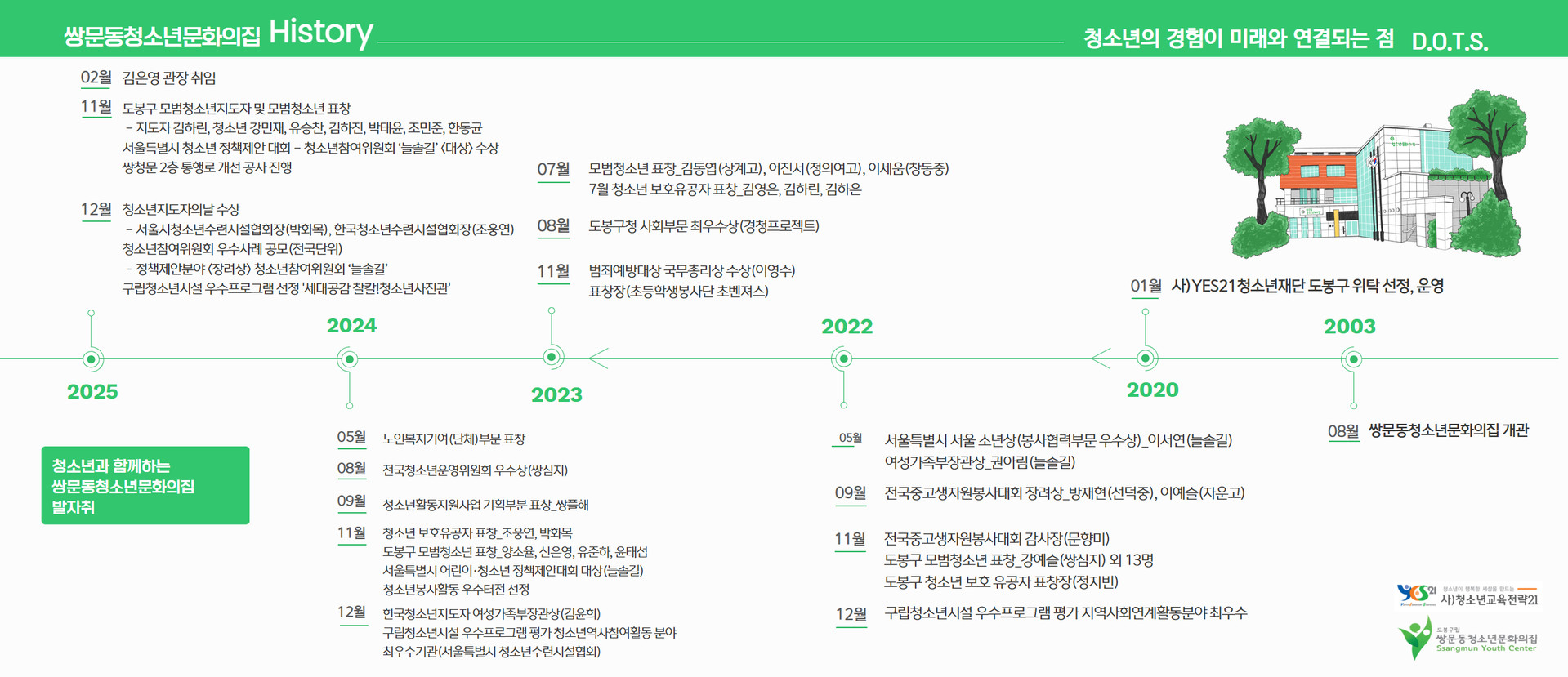 2011년 1월 도봉구청으로부터 사)YES21청소년재단이 위탁 받아 운영하고 있습니다.