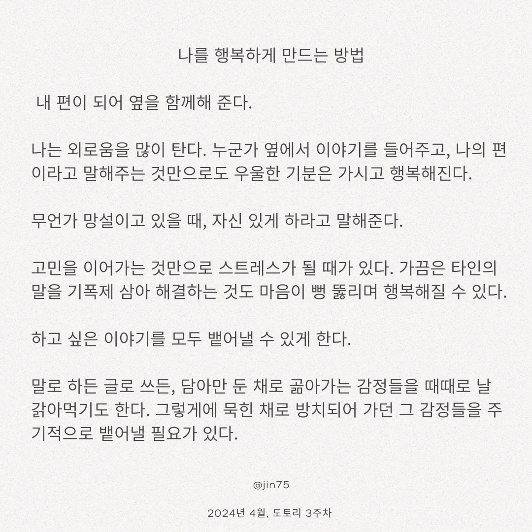 혼자가 편하더라도 가끔은 내 이야기를 들어주고
