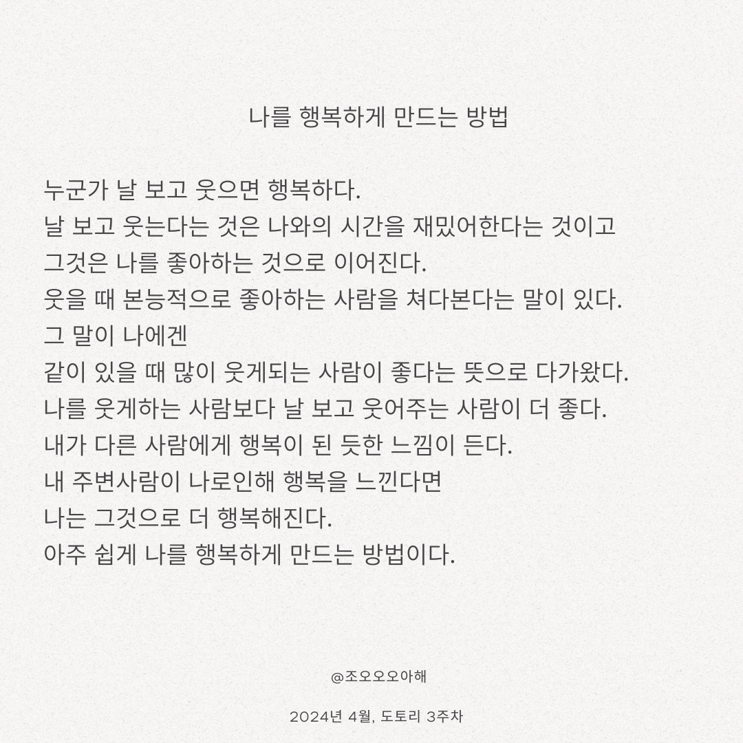 행복이 된 적이 있을까 생각해봤던 글이었어요.