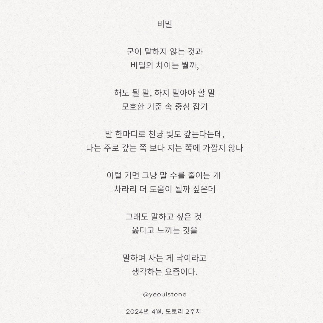 오늘은 <비밀> 의 마지막 글입니다.