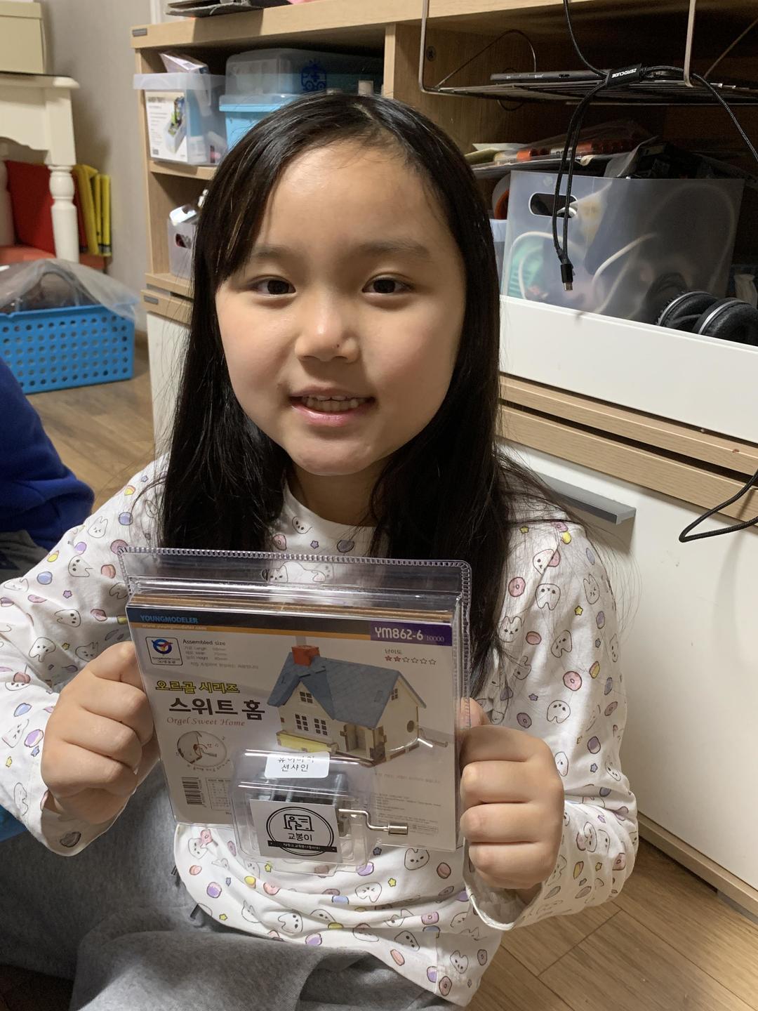 평소 오르골을 아주 좋아해요. 내 손으로 직접 만들어 보니 더 신나고 기분이 좋았어요. 나사를 조이고 나무판을 조립하다 보니 나만의 집이 뚝딱 완성되었어요. 재미있는 활동을 할 수 있는 기회를 주셔서 감사합니다.