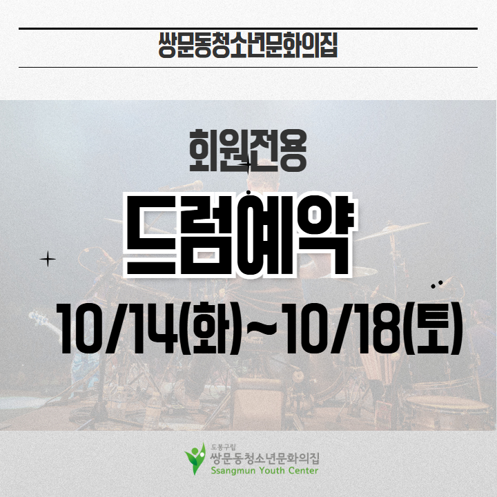 청소년 드럼회원은 토요일(담다 2, 3번방)