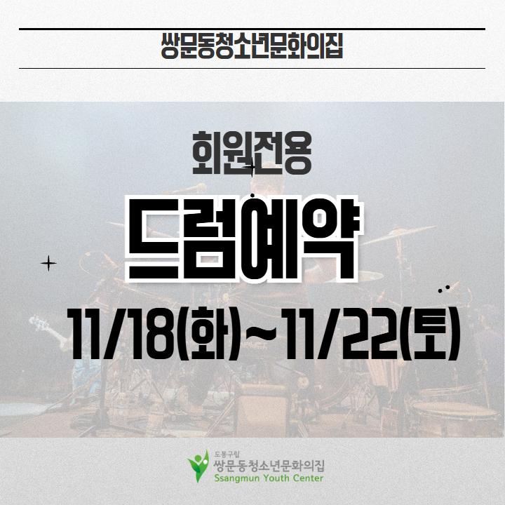 청소년 드럼회원은 토요일(담다 2, 3번방)